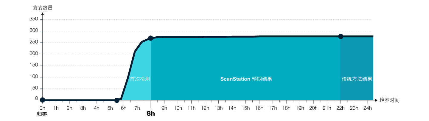 凭借ScanStation技术,您可以实时监控细菌的生长情况。菌落一旦出现就会被立即检测并计数,从而大大缩短了获得结果所需的时间——比传统方法快三倍。